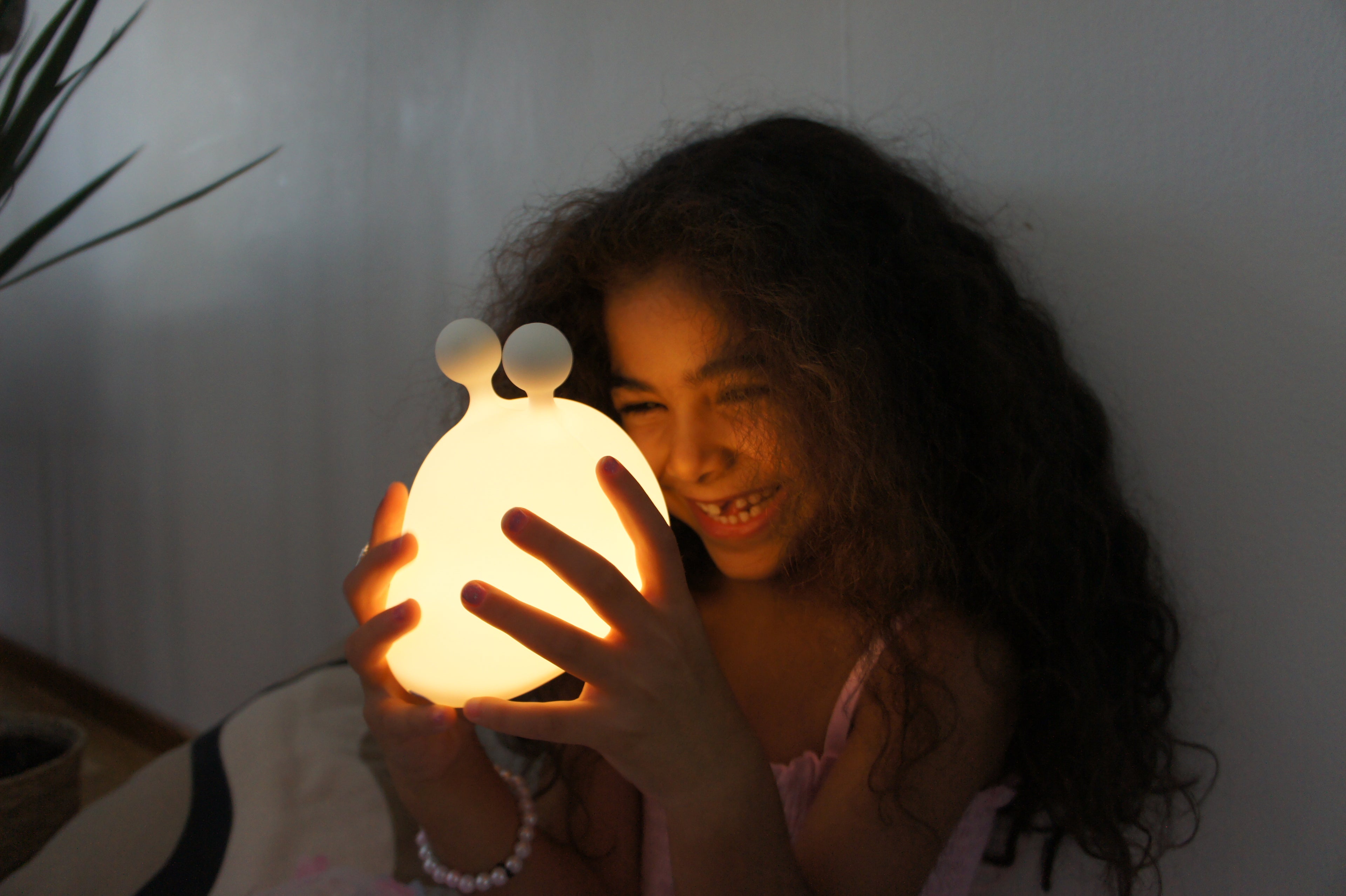 En underbar liten nattlampa som min son tycker mycket om. Mjuk o smidig o ha nära i sängen. Perfekt med dim-funktion! Lätt o ladda! Supermysig!