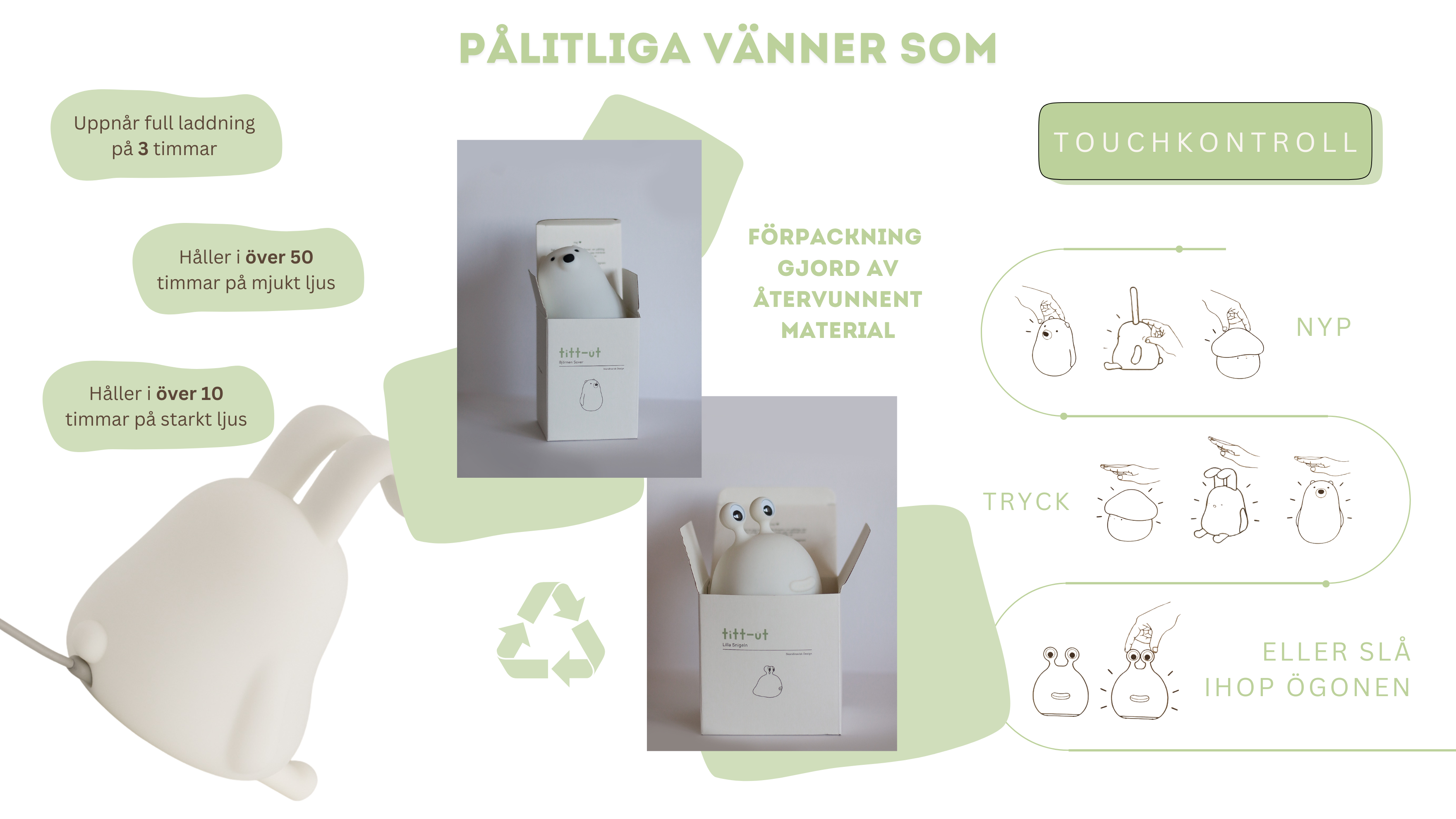 "Jag är en mjuk pålitlig vän som under natten kan lysa upp mörkret och skapa en trygg miljö för dig och dina barn.